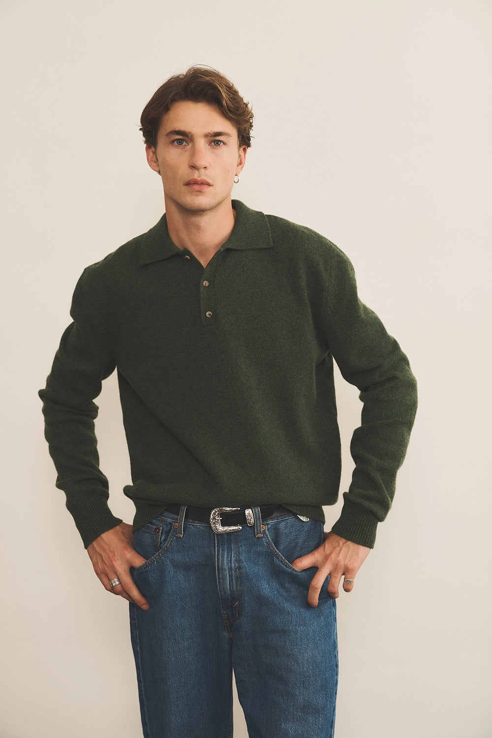 Dark green cashmere polo sweater men - focus | Ralph | Linnea Lund