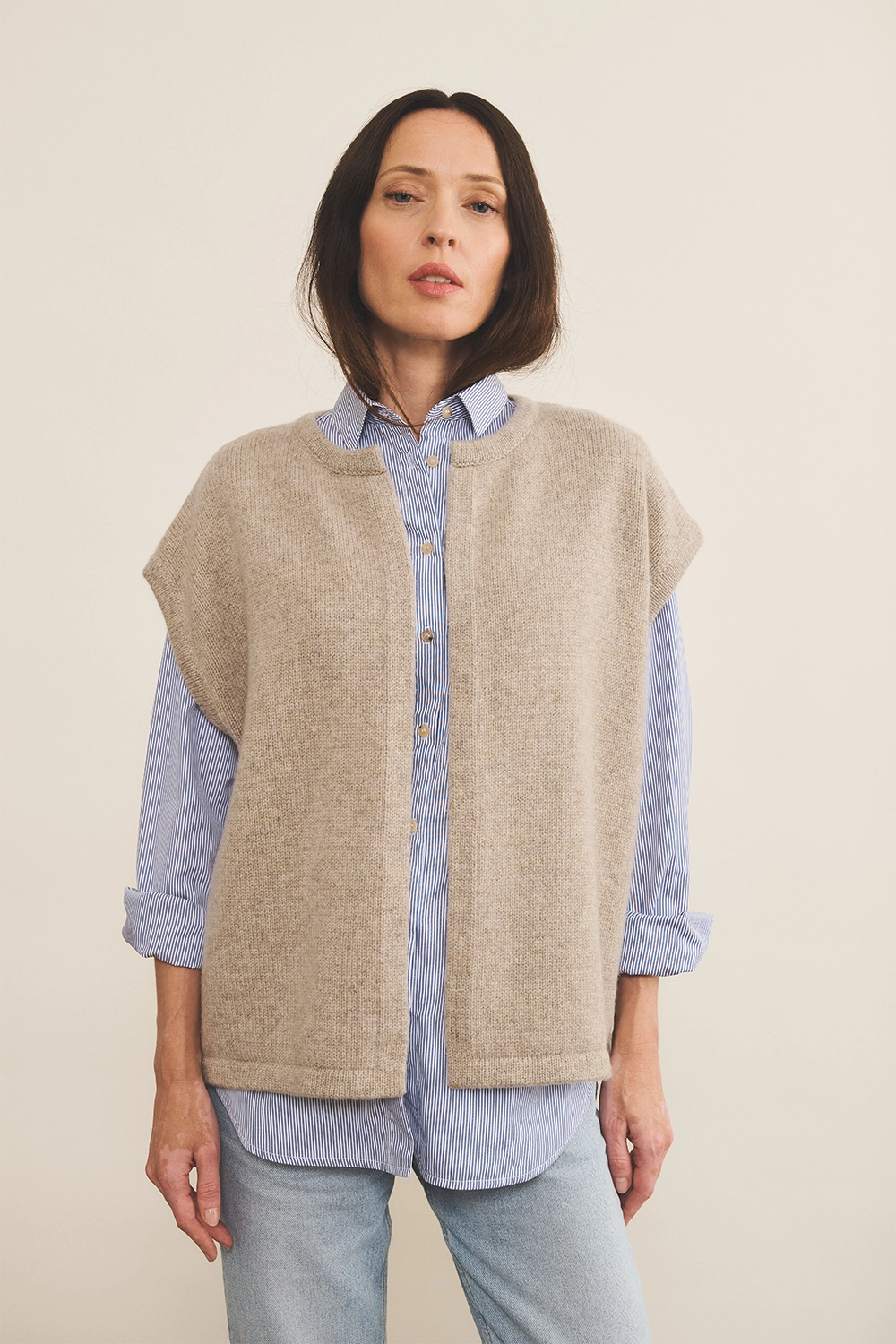 Cashmere sleeveless cardigan women light beige - front | Théo | Linnea Lund