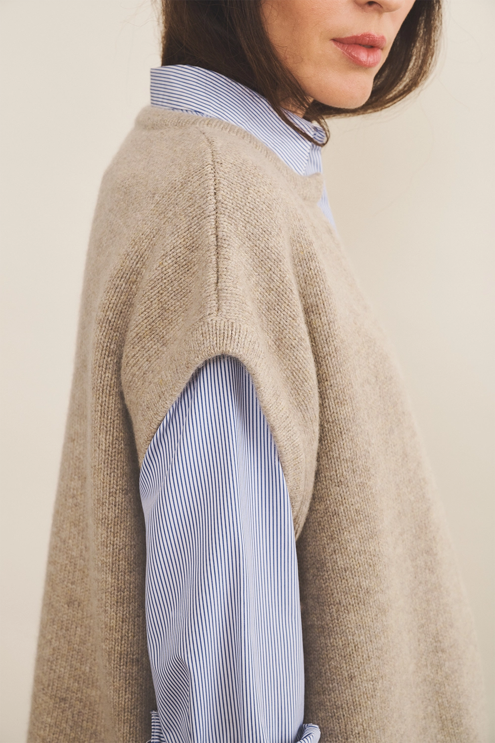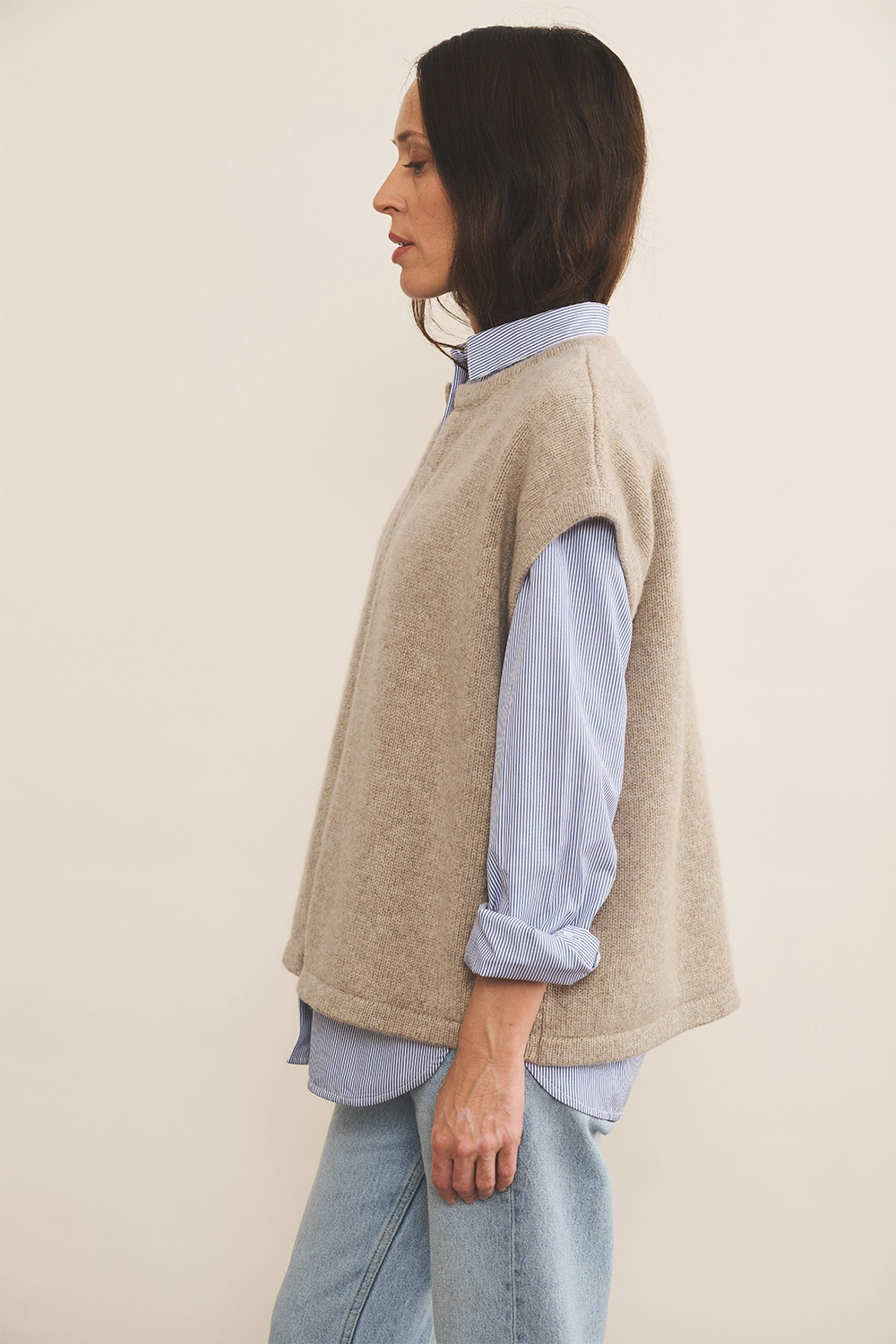Cashmere sleeveless cardigan women light beige - side view | Théo | Linnea Lund